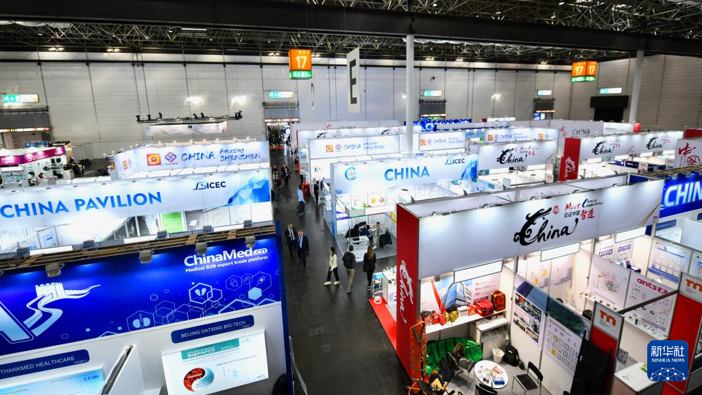 11月17日,人们在德国杜塞尔多夫国际医疗器械设备展的中国展区参观。