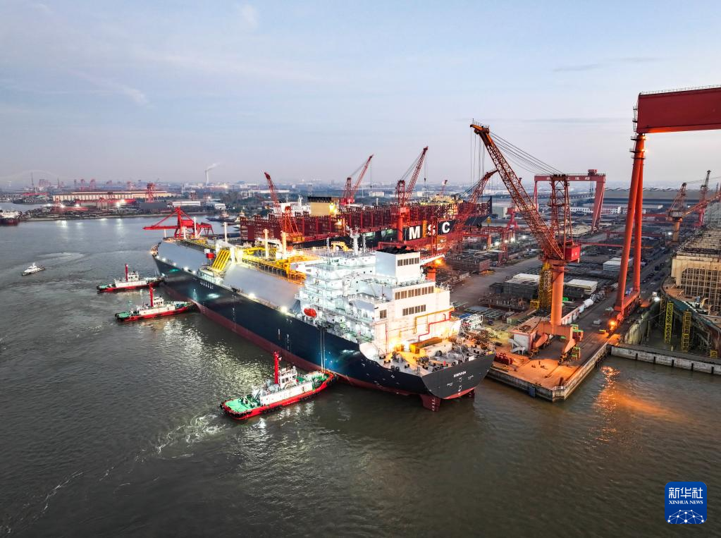 11月20日,17.5万立方米LNG运输船“鑫福124”轮出坞(无人机照片)。