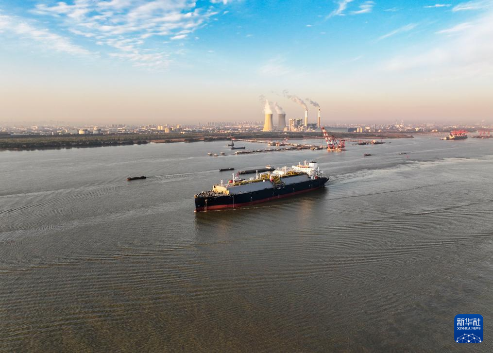 11月20日,17.5万立方米LNG运输船“鑫福124”轮行驶在长江泰兴段(无人机照片)。