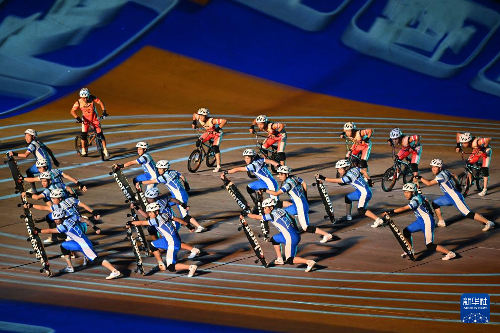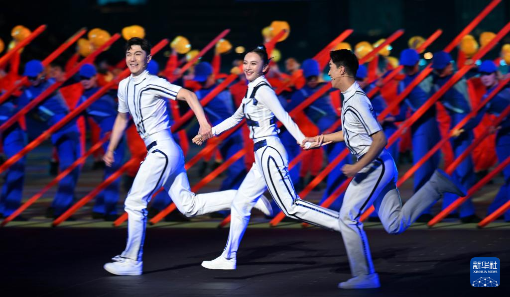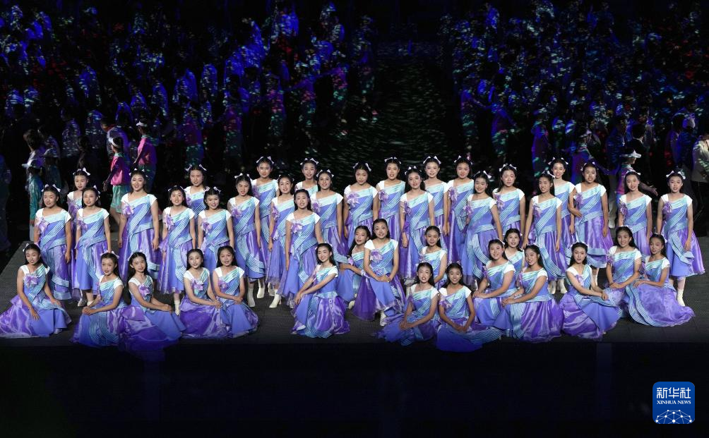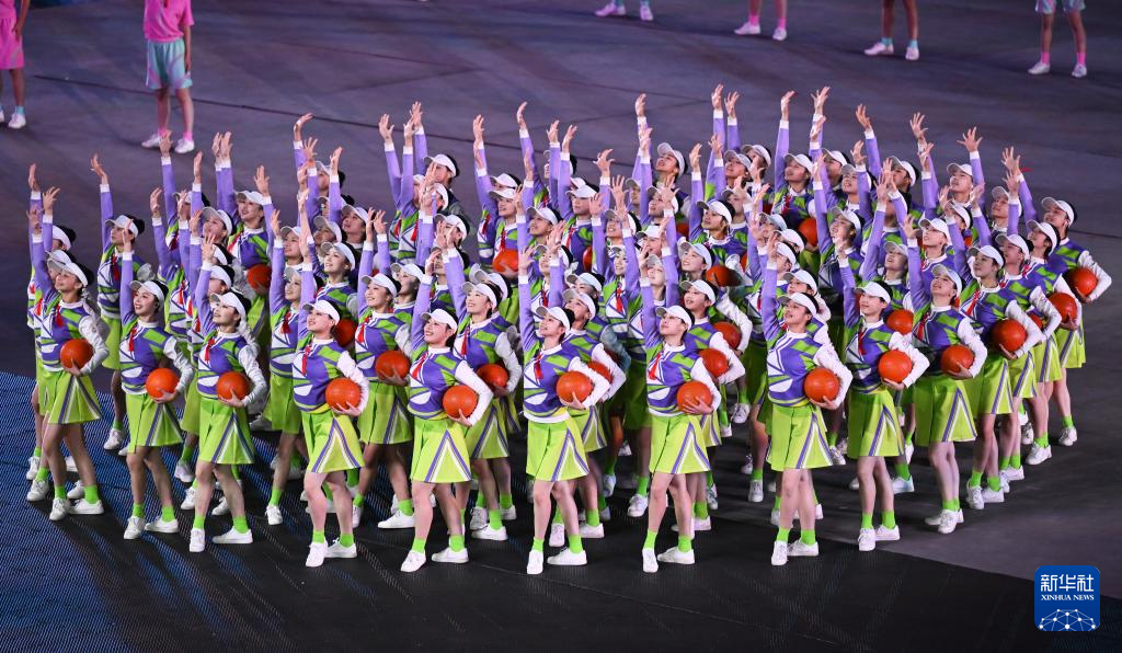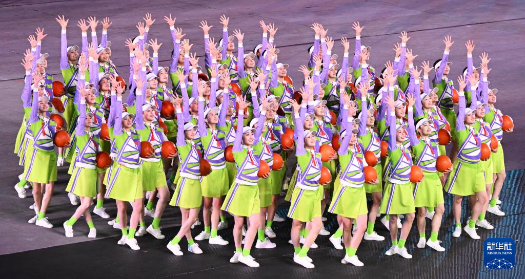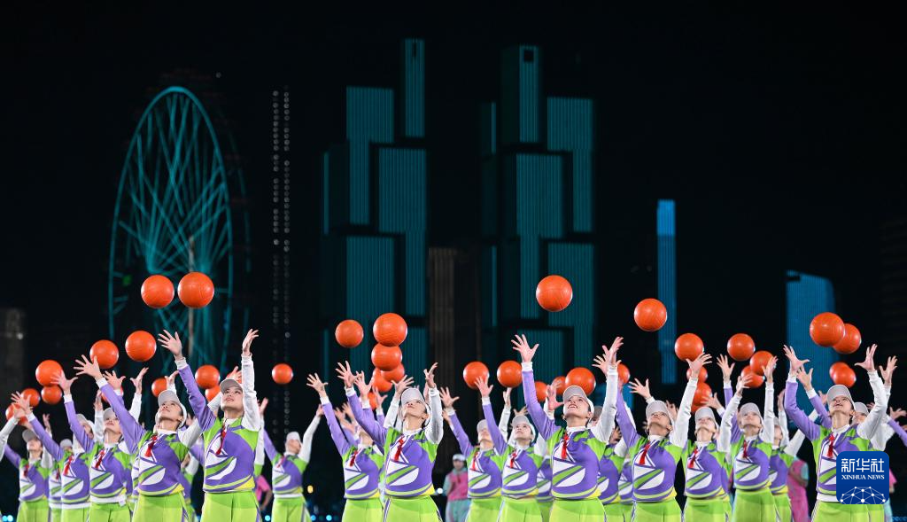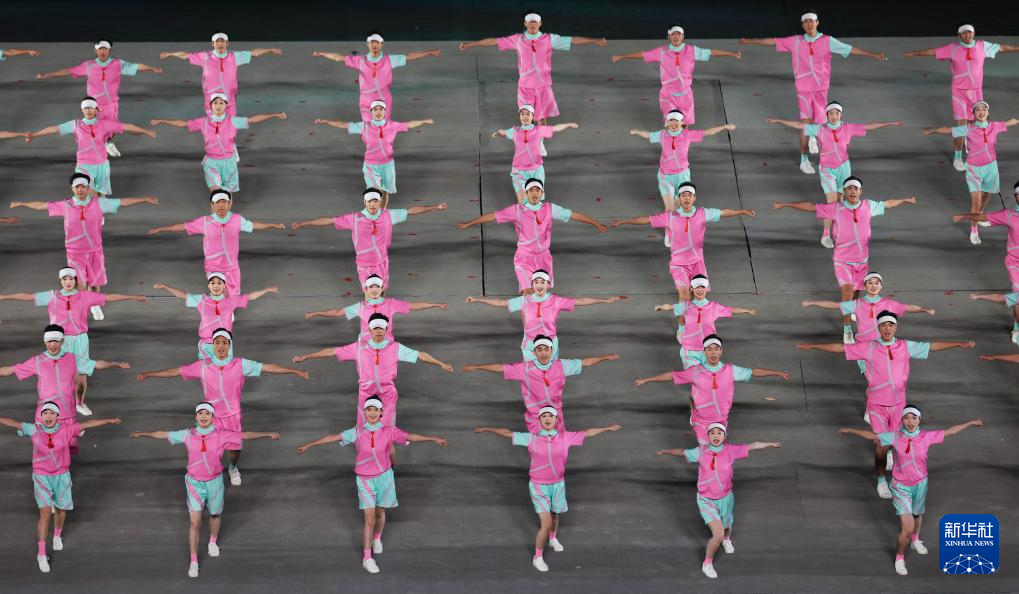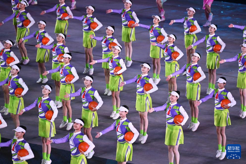 11月21日,演员在闭幕式现场表演第九套广播体操。