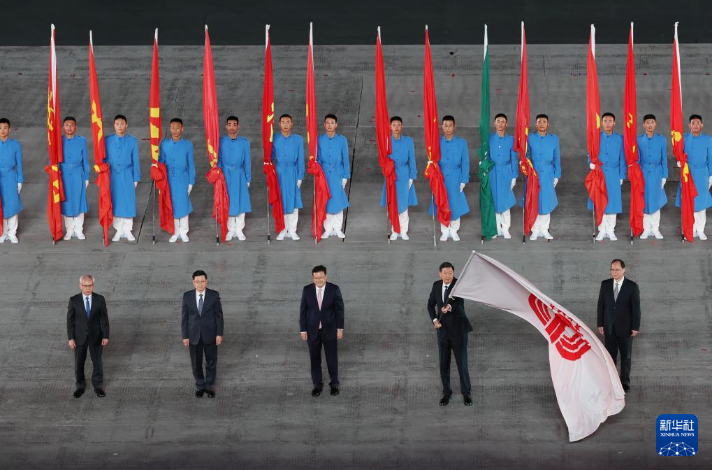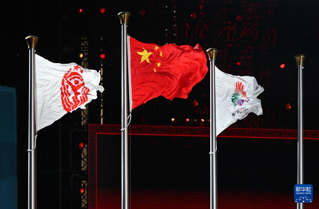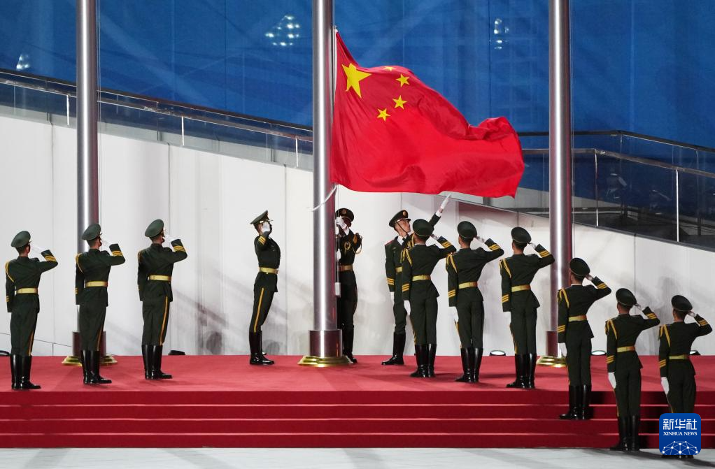 这是11月21日拍摄的闭幕式上的升国旗仪式。