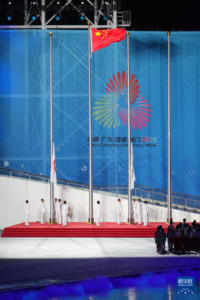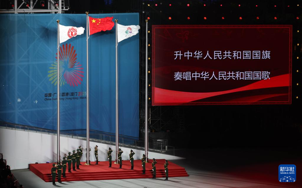 11月21日,广东、香港和澳门代表团代表在闭幕式上一同入场。