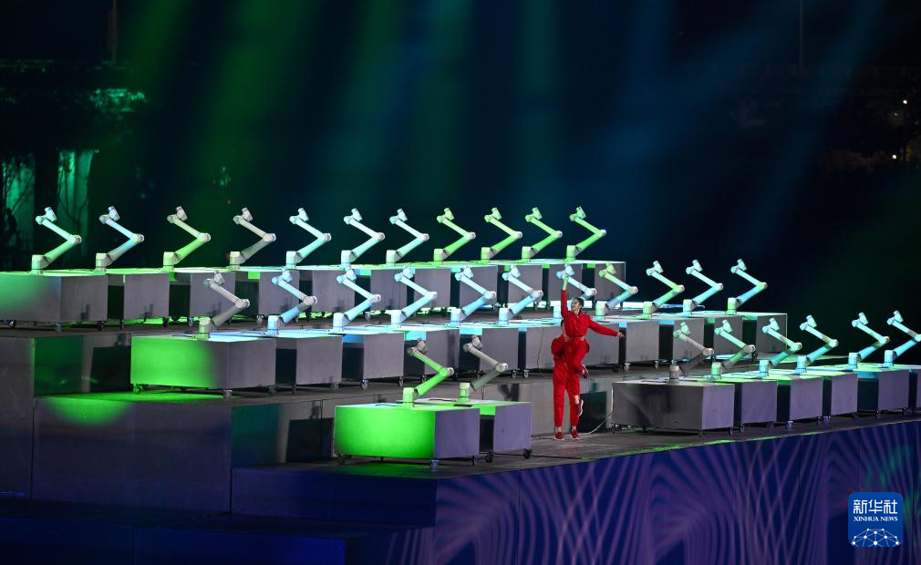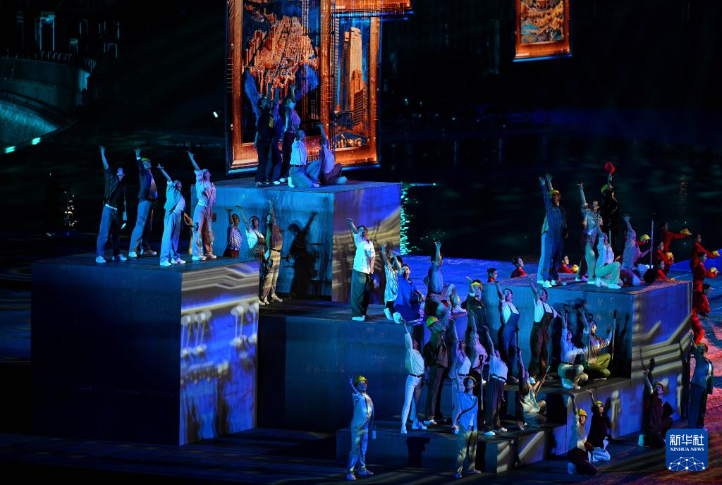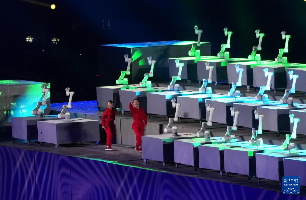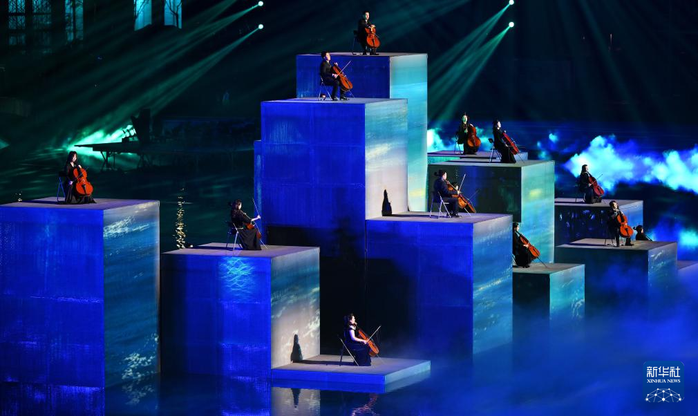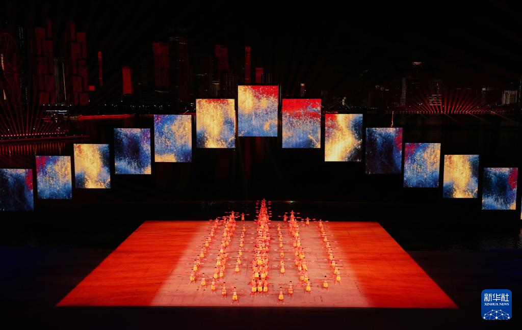11月21日,运动员代表和演员在闭幕式现场进行表演。