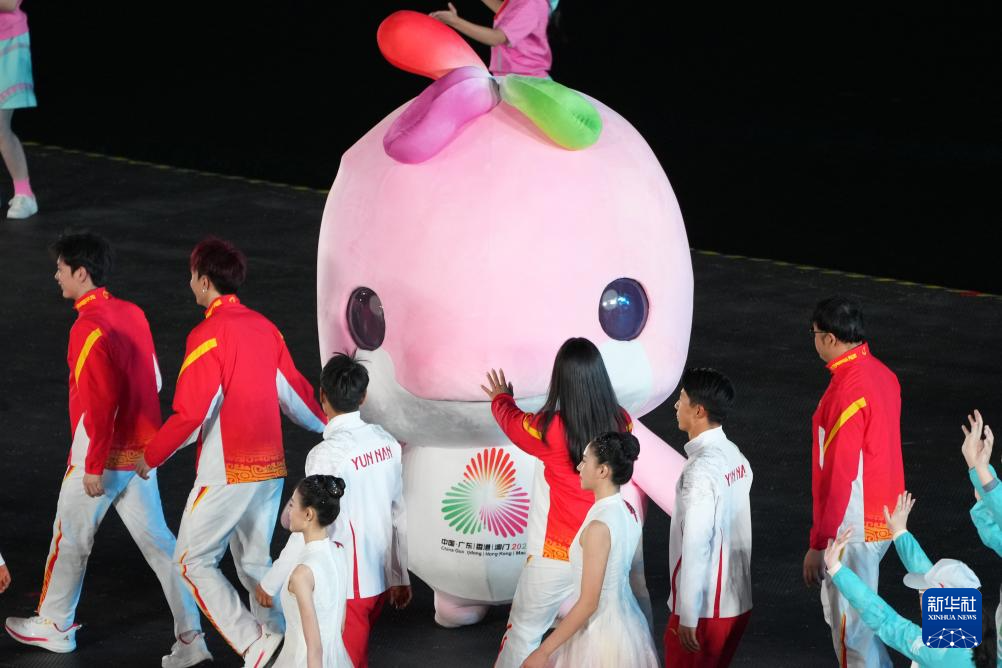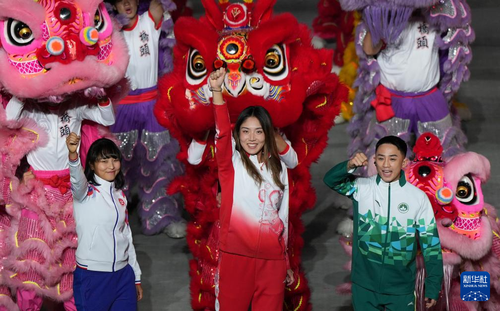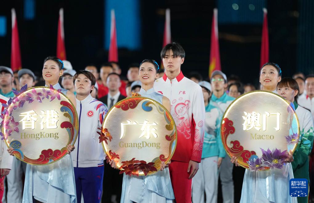11月21日,广东省体育代表团、香港特别行政区体育代表团和澳门特别行政区体育代表团代表在闭幕式入场仪式上共同入场。