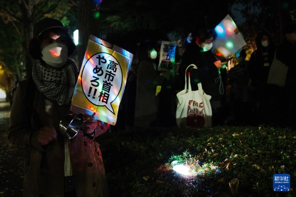 数百名日本民众21日晚在位于东京的首相官邸前举行集会,抗议日本首相高市早苗近日在国会发表的涉台错误言论,要求其撤回相关表态并作出解释和道歉。