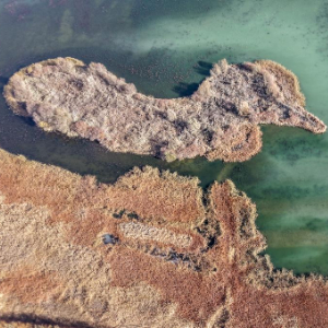 这是11月12日在河西走廊中部的张掖黑河湿地国家级自然保护区高台段拍摄的一处湖泊(无人机照片)。
