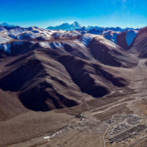 珠穆朗玛峰脚下的西藏定日县措果乡野江村,靠近珠峰方向为建成并交付群众使用的新房(11月12日摄,无人机照片)。