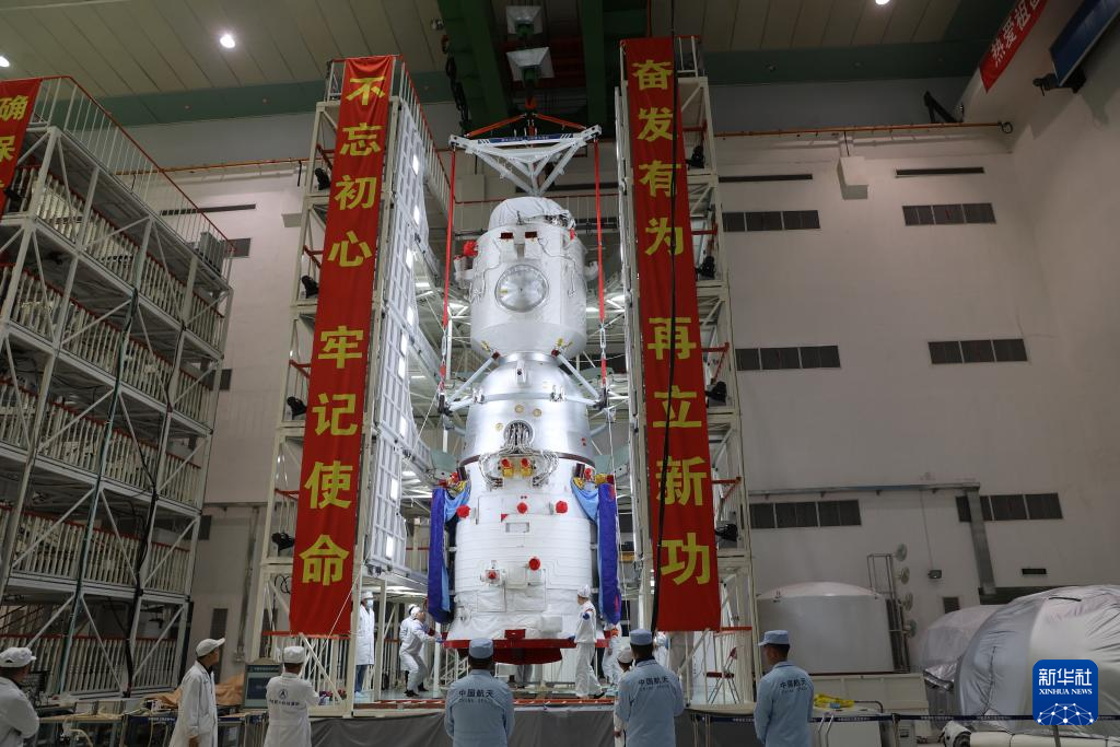 11月12日,神舟二十二号飞船准备从厂房吊装至公路运输车。