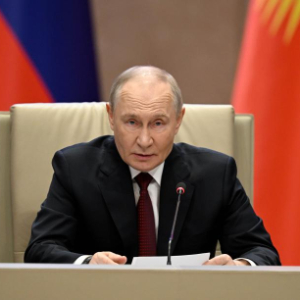 11月27日,在吉尔吉斯斯坦比什凯克,俄罗斯总统普京在集安组织集体安全理事会会议上发言。