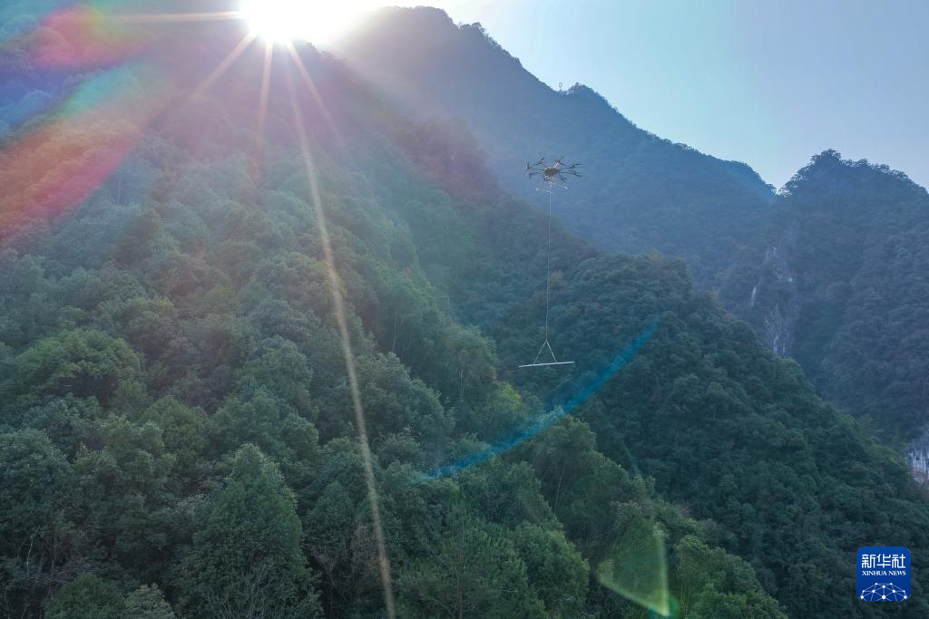 11月27日,在重庆市巫溪县中梁乡35千伏西土线改造现场,一架重载无人机来回穿梭在地势险峻的群山之中,将塔材搬运至新建铁塔处。这是国网重庆市电力公司首次在大山中应用重载无人机铁塔吊装技术转运铁塔塔材,标志着山区电网建设迈入更高水平机械化、绿色化新阶段。