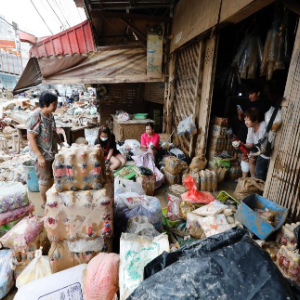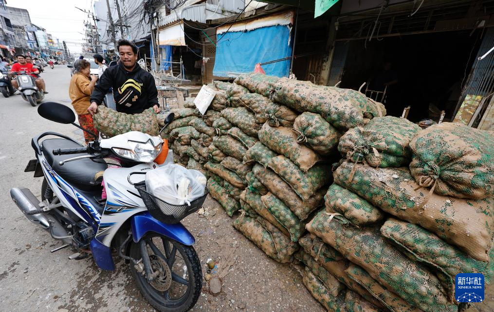 11月28日,在泰国宋卡府合艾市街头,一名男子搬运物资。