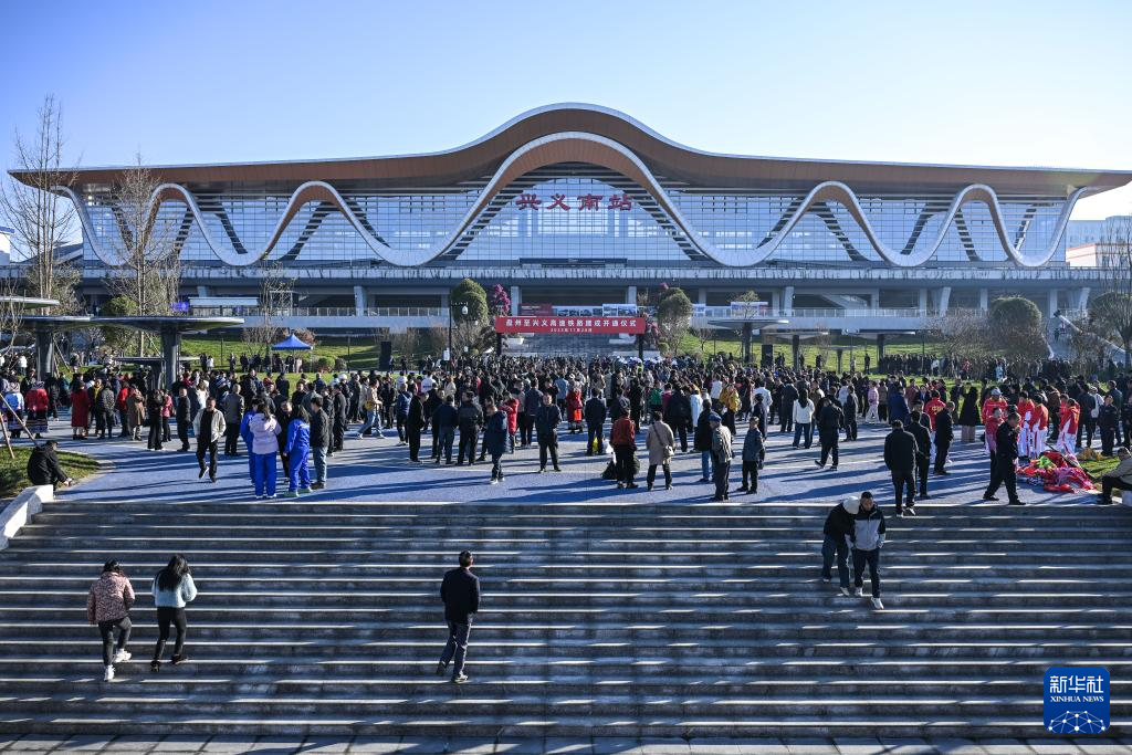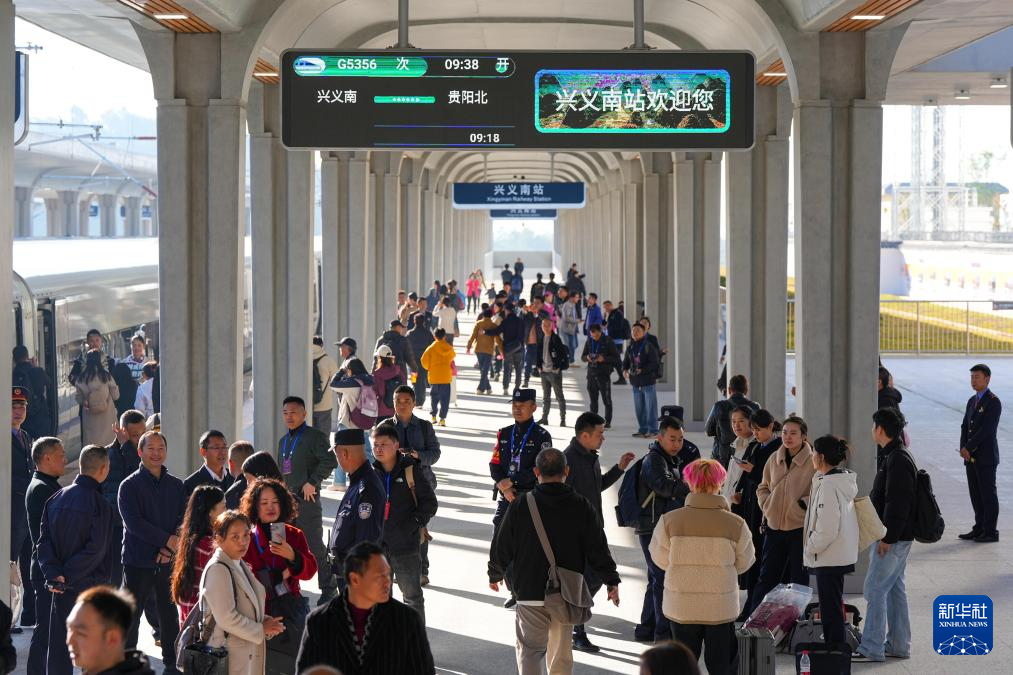 11月28日,旅客在兴义南站乘坐盘兴高铁首发列车G5356次。