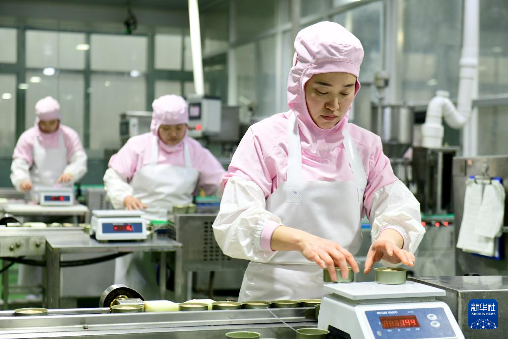 11月29日,在中誉宠物食品(菏泽)有限公司,工作人员在宠物食品生产线忙碌。