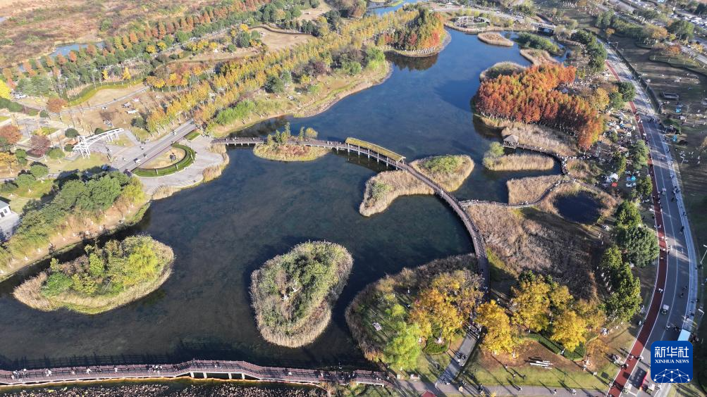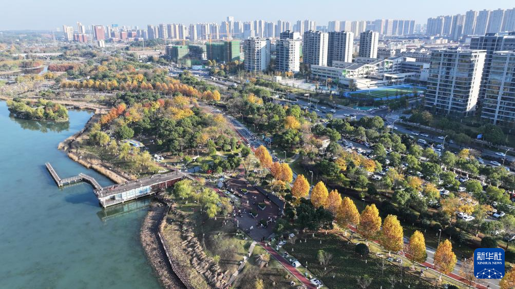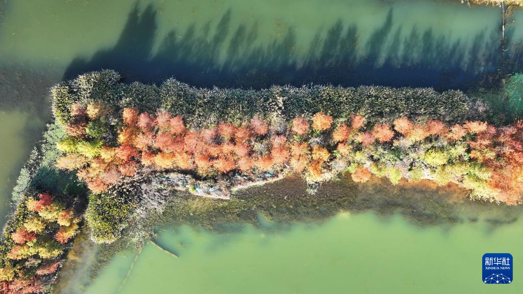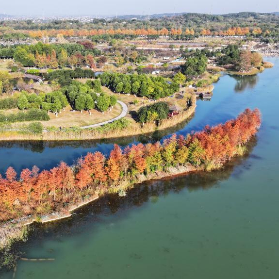 近日,位于湖南省长沙市的松雅湖国家湿地公园内水杉树叶颜色开始转红,色彩斑斓的美丽图景吸引不少市民前来游玩打卡。