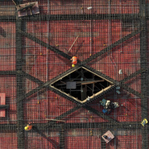 11月30日,工人在淮宿蚌城际铁路淮北西站站前广场项目施工现场作业(无人机照片)。