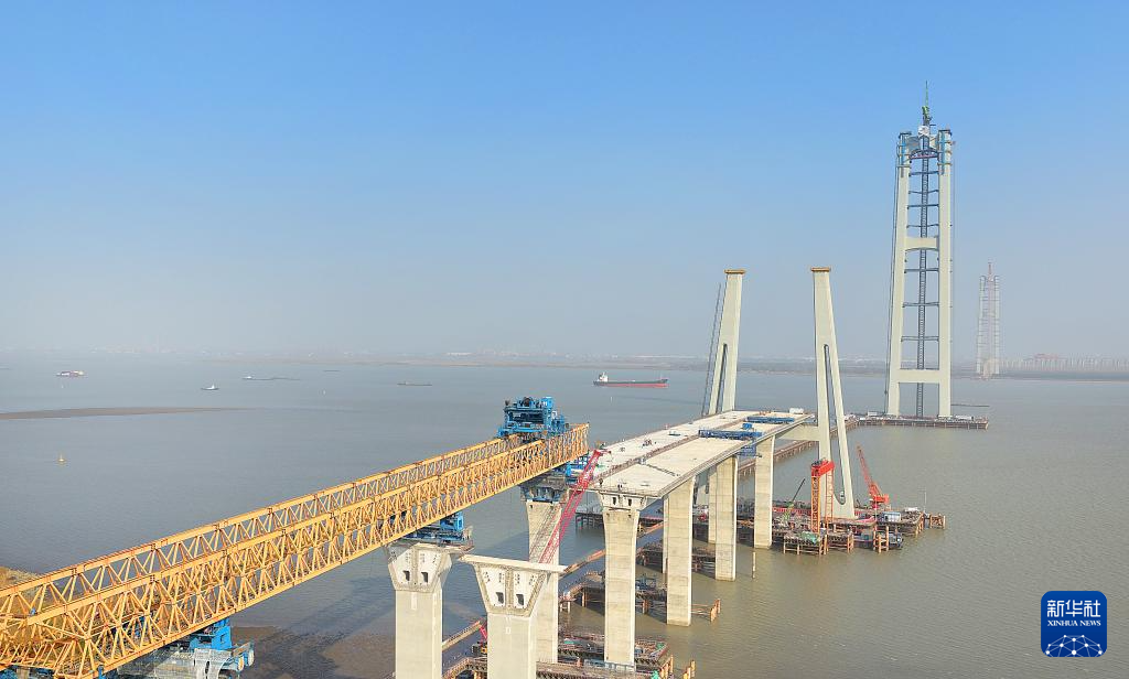 12月1日,由江苏省交通工程建设局建设、中交二航局承建的张靖皋长江大桥南航道桥南主塔上横梁精准合龙,成功实现封顶,标志着大桥南航道桥南北主塔主体工程施工全部完成。张靖皋长江大桥连接江苏苏州、泰州和南通,跨江段全长7859米,设置南、北两座航道桥及南中北三段引桥。