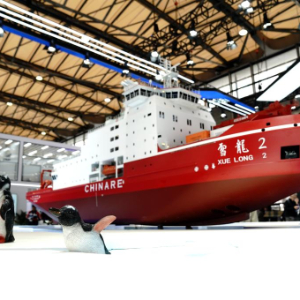 这是在中国国际海事会展上拍摄的“雪龙2”号极地科考破冰船模型(12月2日摄)。