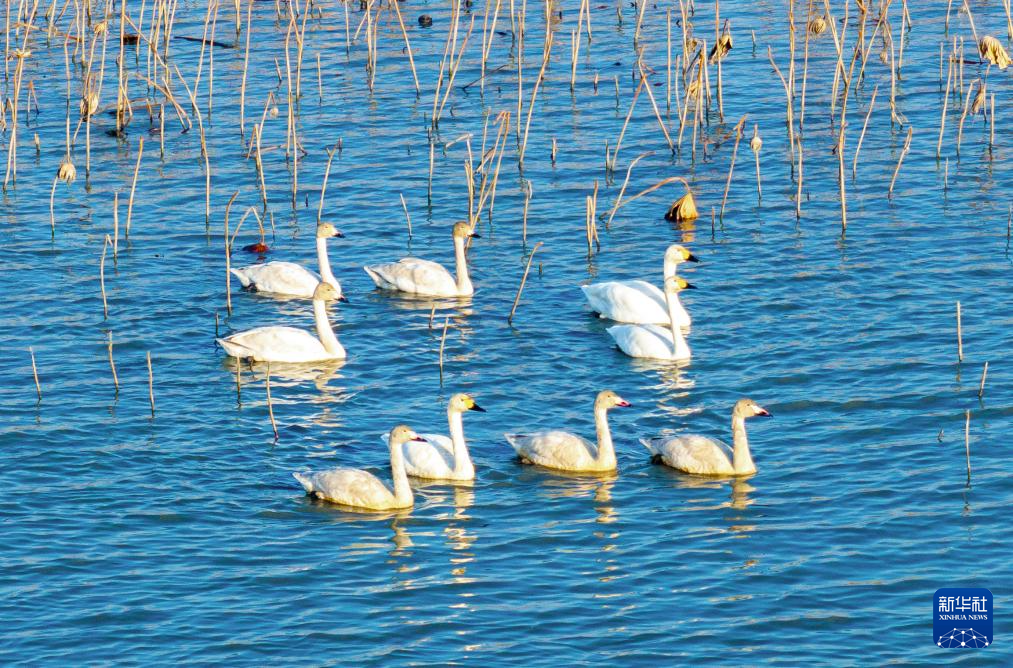 12月1日,候鸟在云南省腾冲市东湖公园栖息(无人机照片)。