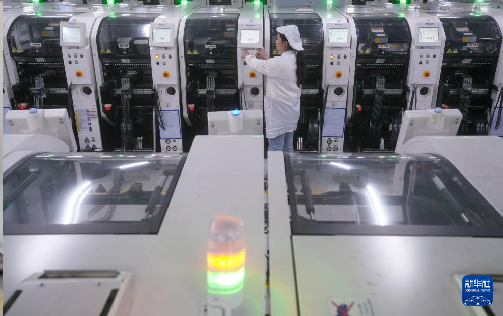 12月2日,在重庆新视通智能科技有限公司SMT(表面组装技术)生产车间,工人在操作自动贴片机。