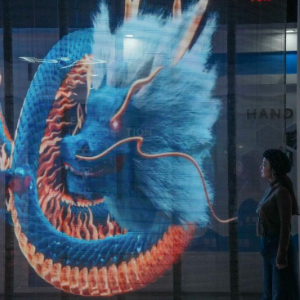 12月2日,在重庆新视通智能科技有限公司展厅内,工作人员在介绍LED成品。