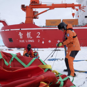 近日,正在执行中国第42次南极考察任务的“雪龙”号抵达南极中山站外围陆缘冰。“雪龙2”号已于北京时间11月25日率先抵达该区域。两船正协同开展中山站区域大规模卸货作业。本次作业将累计完成约2000吨各类物资卸运。按计划,整体卸货作业将持续约15天。据“雪龙2”号轮机长李文明介绍,“雪龙2”号是首次为考察站补给燃油。
