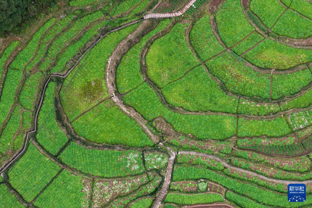 这是12月3日在重庆市綦江区赶水镇石房村拍摄的草蔸萝卜种植基地(无人机照片)。