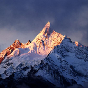 12月3日清晨,云南梅里雪山在云海中若隐若现,在阳光照射下呈现出“日照金山”的壮丽景观。