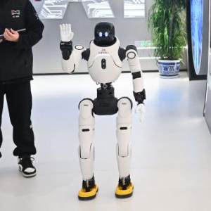 12月4日,在南京人工智能生态街区的“AI·模坊”南京智能体集散中心,一款华夏机器人在打招呼。