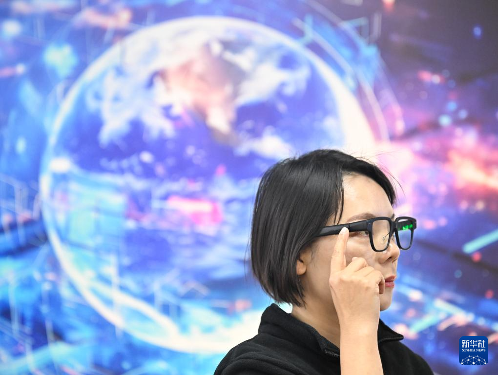 12月4日,在“AI·镜界—南京人工智能生态街区”,工作人员展示一款AI眼镜。