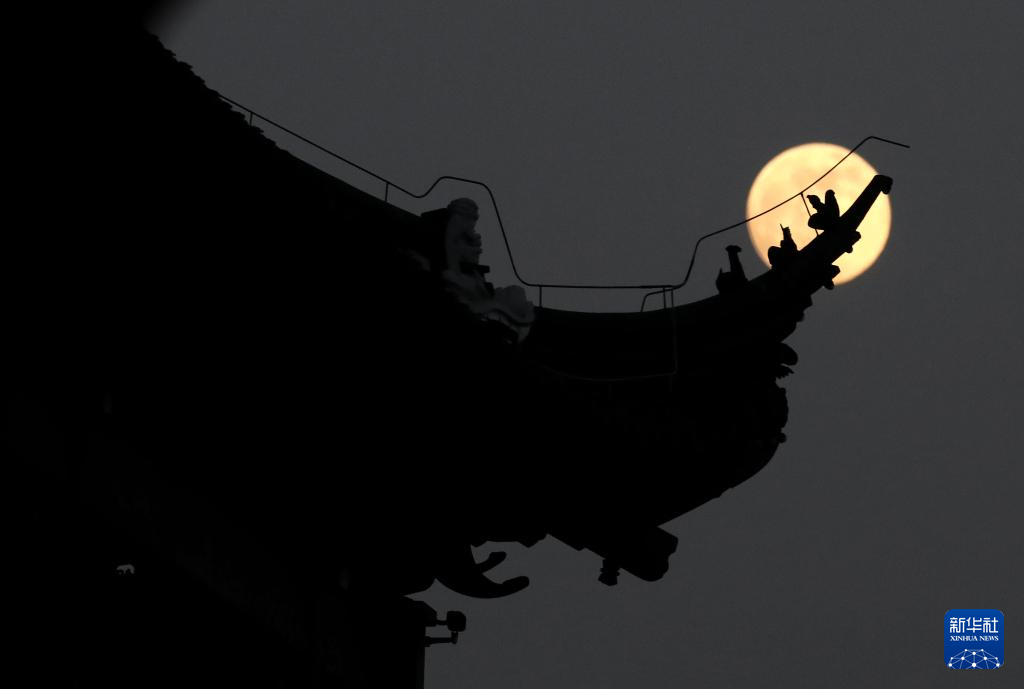 12月4日在江苏南京明故宫遗址公园拍摄的月亮。