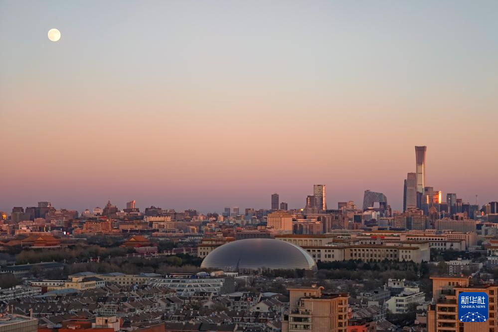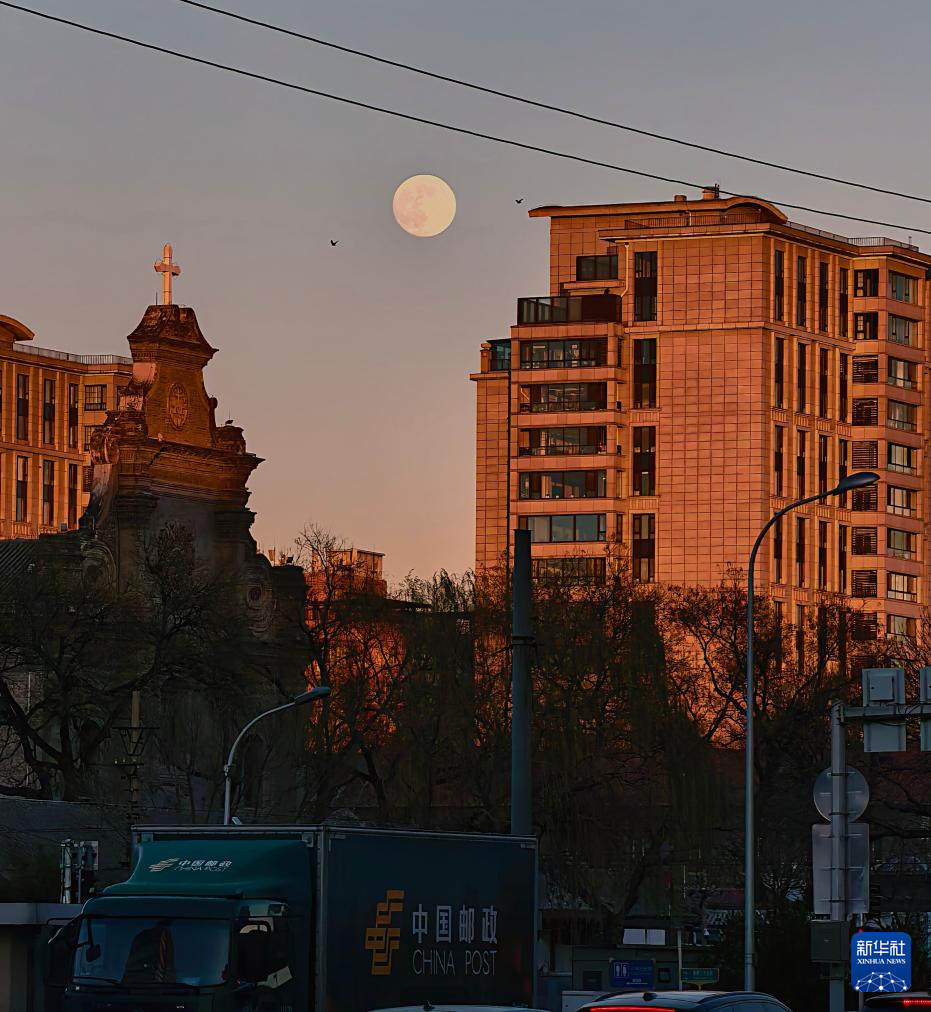 这是12月4日在北京宣武门附近拍摄的月亮与城市景观(手机照片)。