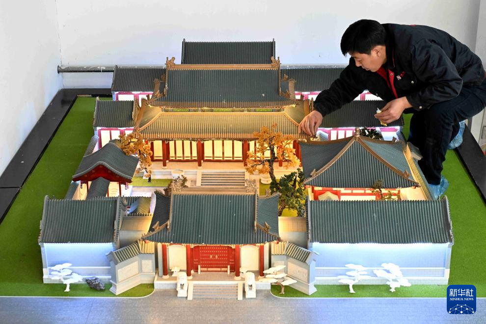 12月8日,工人在河北省石家庄市平山县上三汲乡河渠村一家沙盘企业制作沙盘。