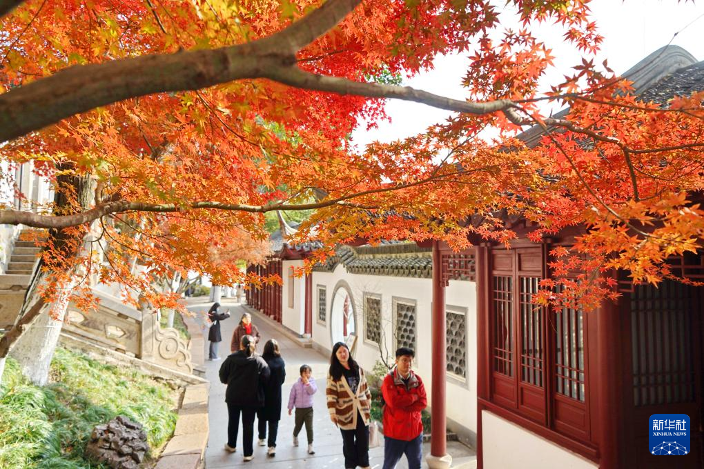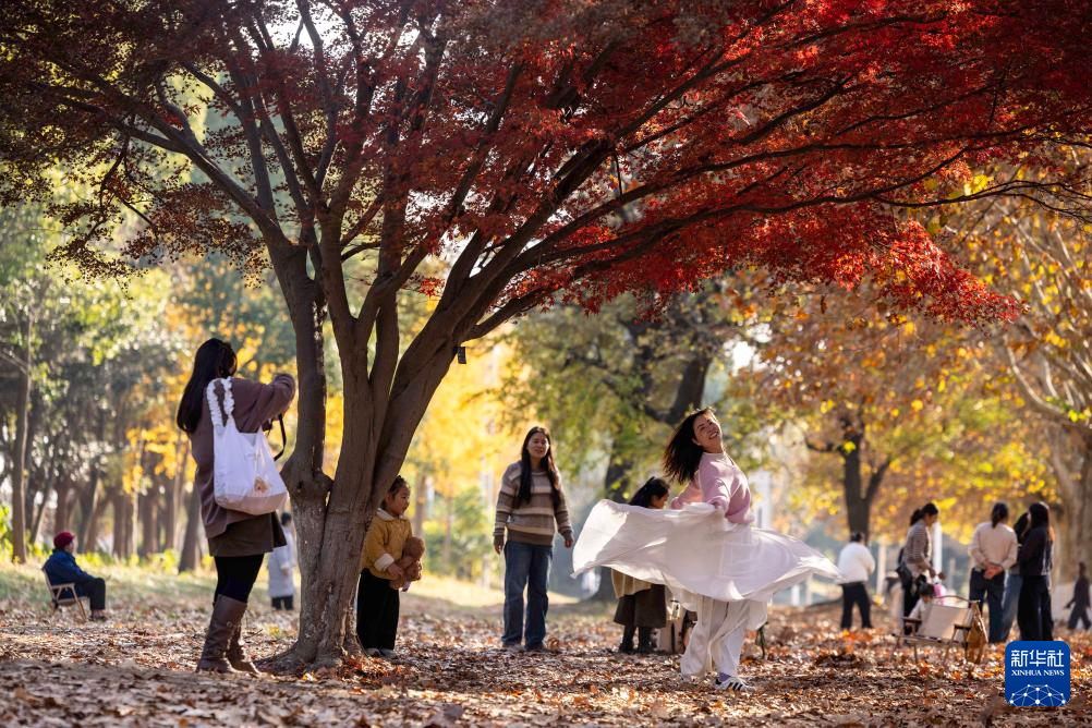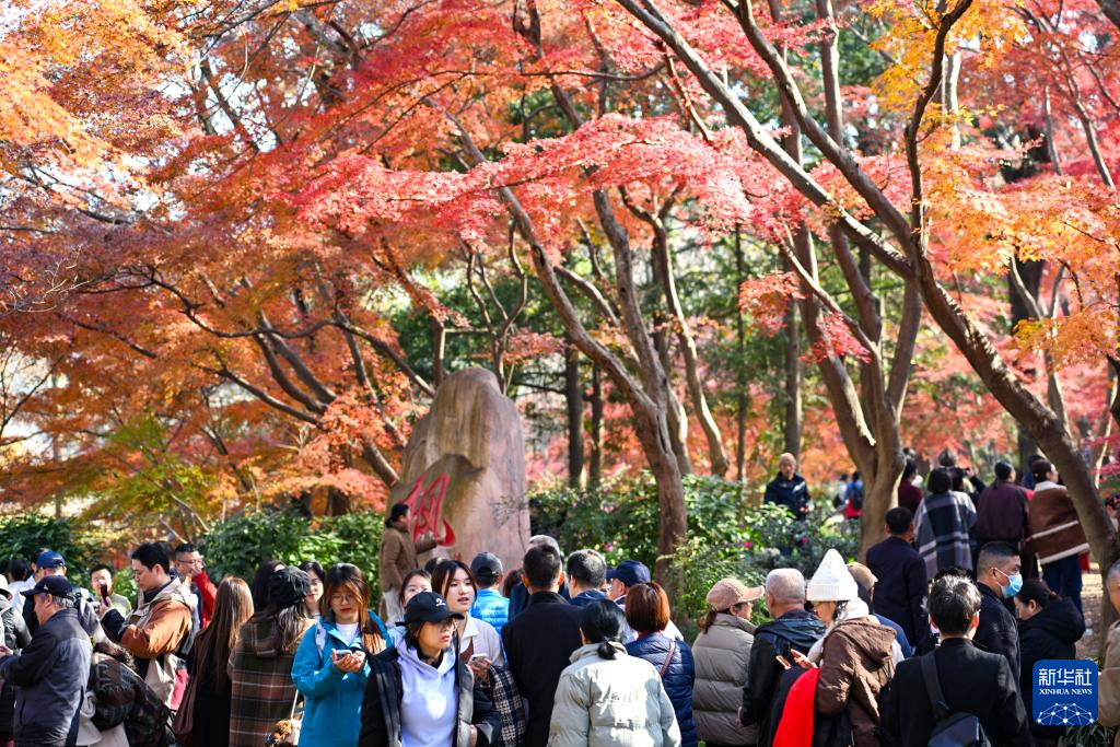 12月7日,游人在江苏南京中山植物园观赏枫叶。