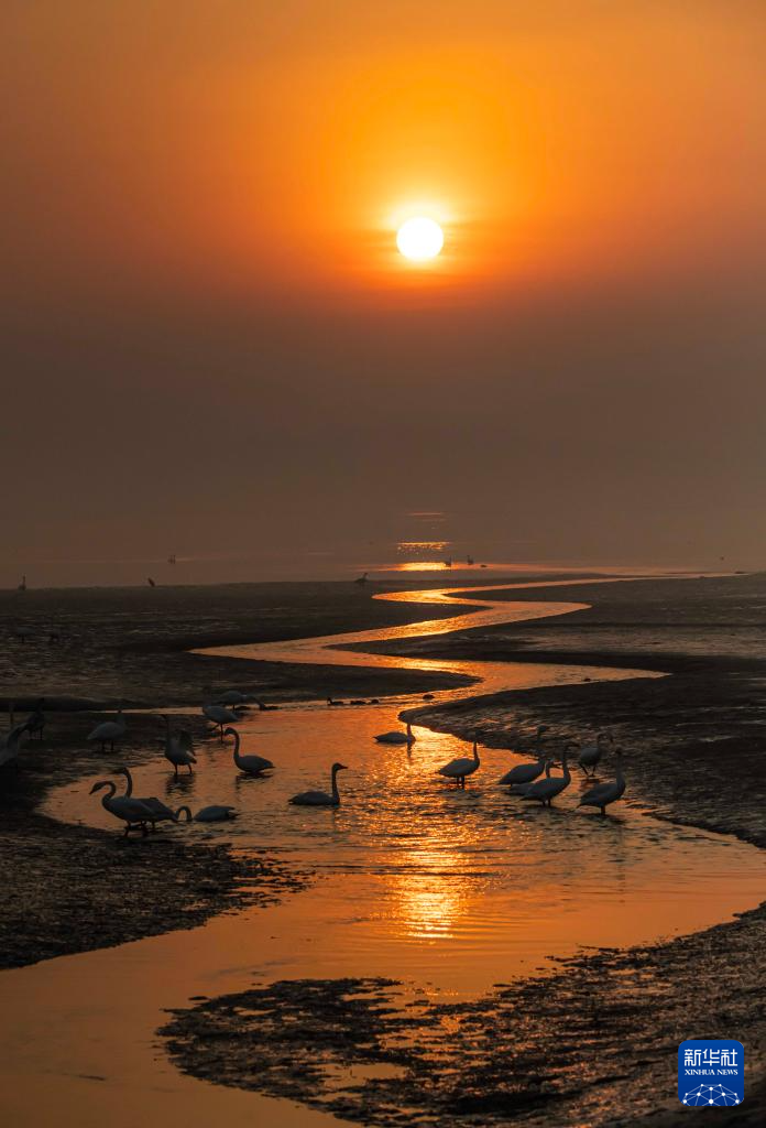 12月7日在山东省荣成市成山镇鸿鹄湾摄影区拍摄的大天鹅。