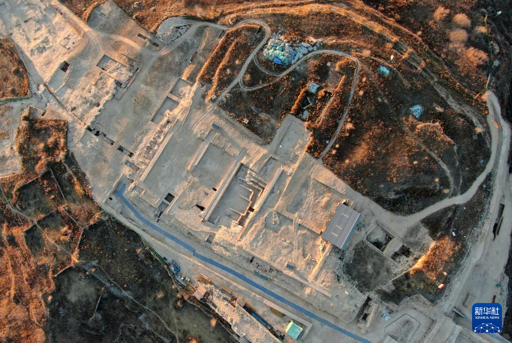 位于陕西榆林的史前城址石峁遗址(2023年11月29日摄,无人机照片)。