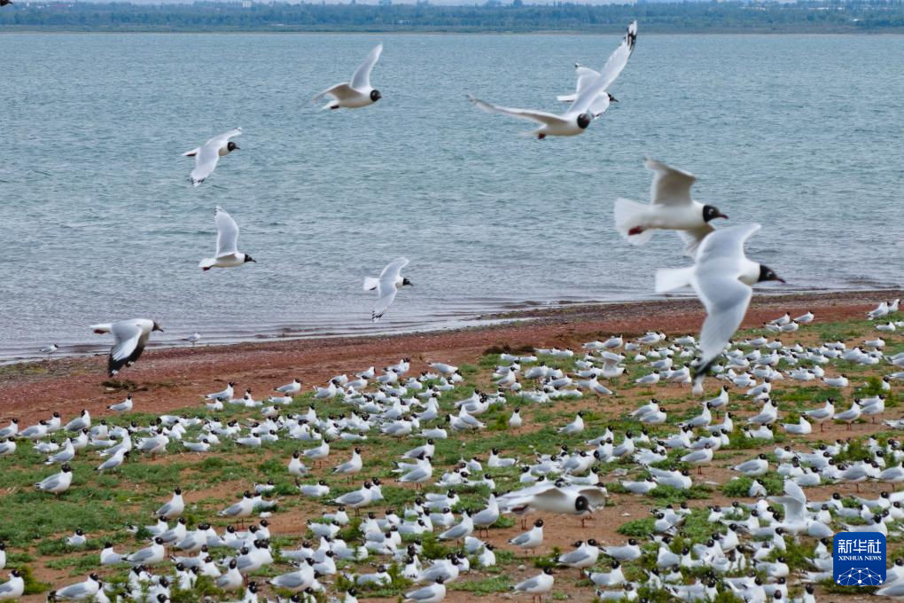红碱淖国家级自然保护区湖心岛上的遗鸥(2024年6月4日摄,无人机照片)。