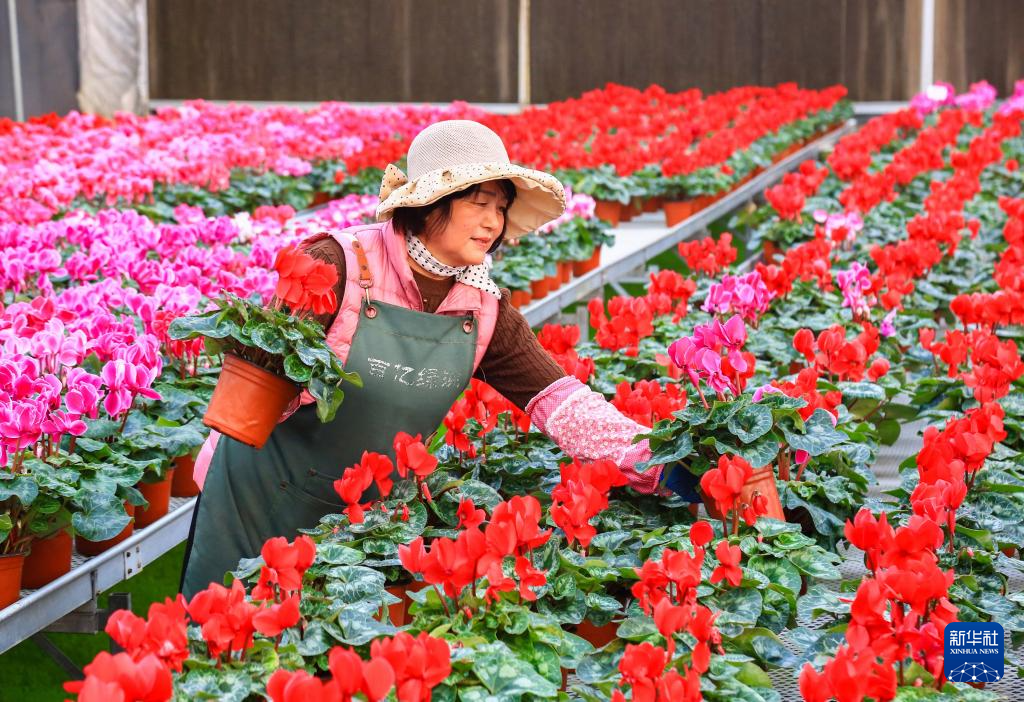 近日,山东省青岛市即墨区灵山街道花卉大棚里一片忙碌,种植户们忙着管护和销售花卉。近年来,即墨区灵山街道因地制宜推动花卉产业标准化、规模化、智能化发展,依托“龙头企业+农户”联农带农机制,大力发展花卉种植,打造集组培育苗、现代化种植、电商销售于一体的产销模式,带动农民增收,助力乡村振兴。