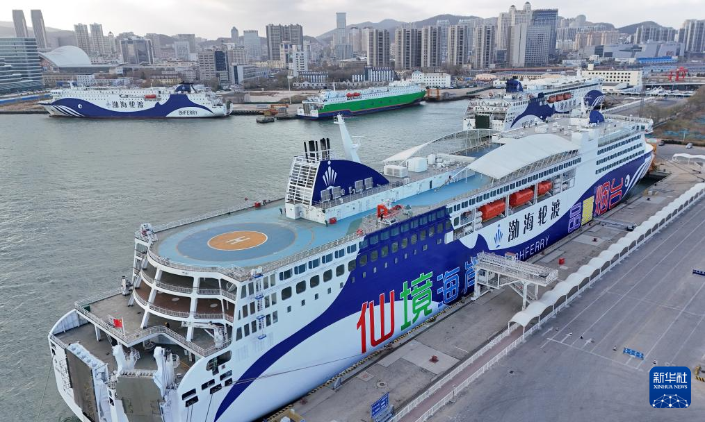 12月11日,客轮在山东港口烟台港停靠避风(无人机照片)。