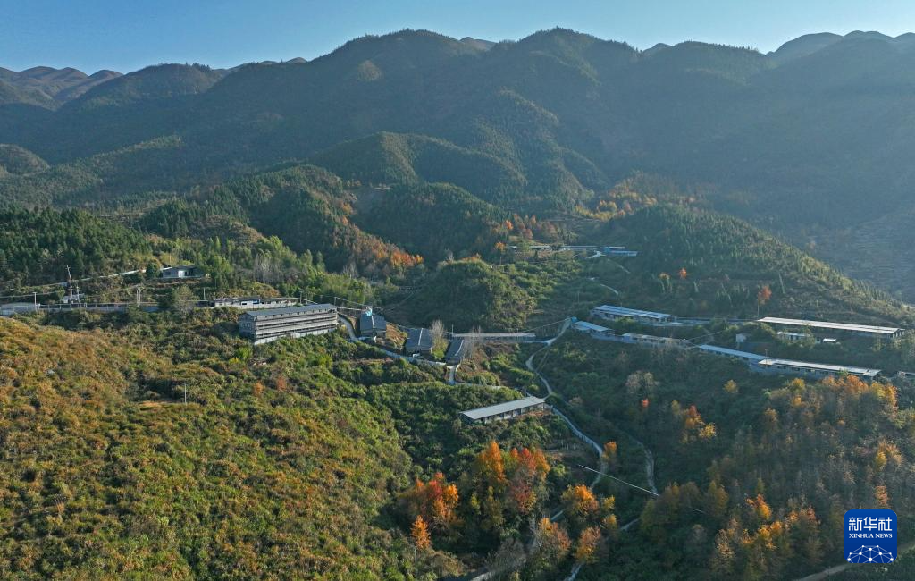 群山环绕的江西省修水县港口镇的幕村杭猪生态农场(12月3日摄,无人机照片)。