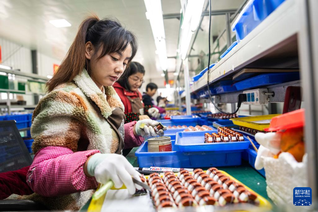 12月11日,在位于桃源县西安镇集镇安置小区的常德市金磁电器有限公司乡村车间,工人在检查电感器产品品质。