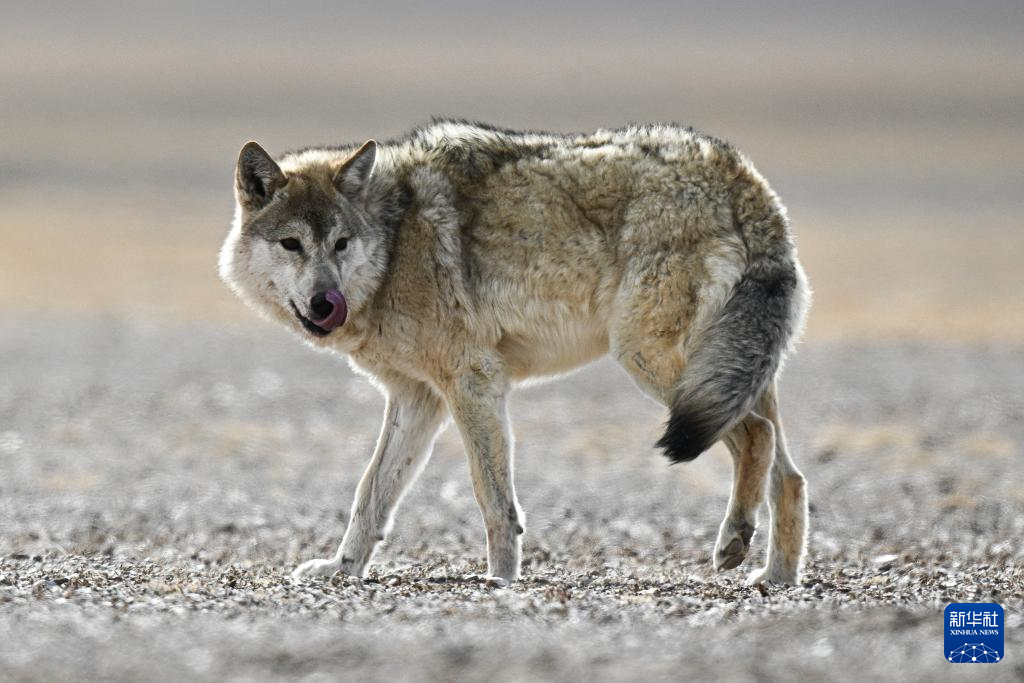 在阿尔金山国家级自然保护区,野狼在寻找捕食的目标(12月6日摄)。