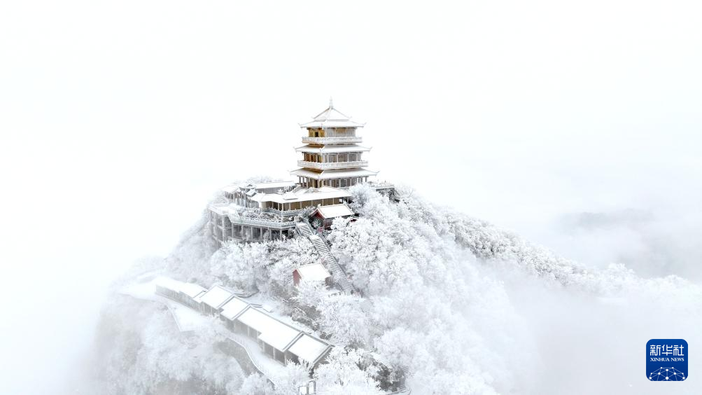 12月12日在河南省济源市王屋山拍摄的雪景(无人机照片)。