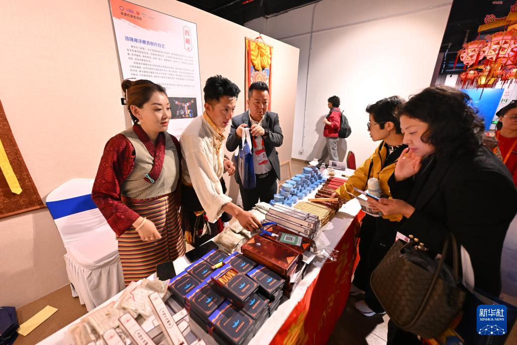 12月12日,游客在海上丝绸之路非物质文化遗产展演活动上选购西藏藏香制品。