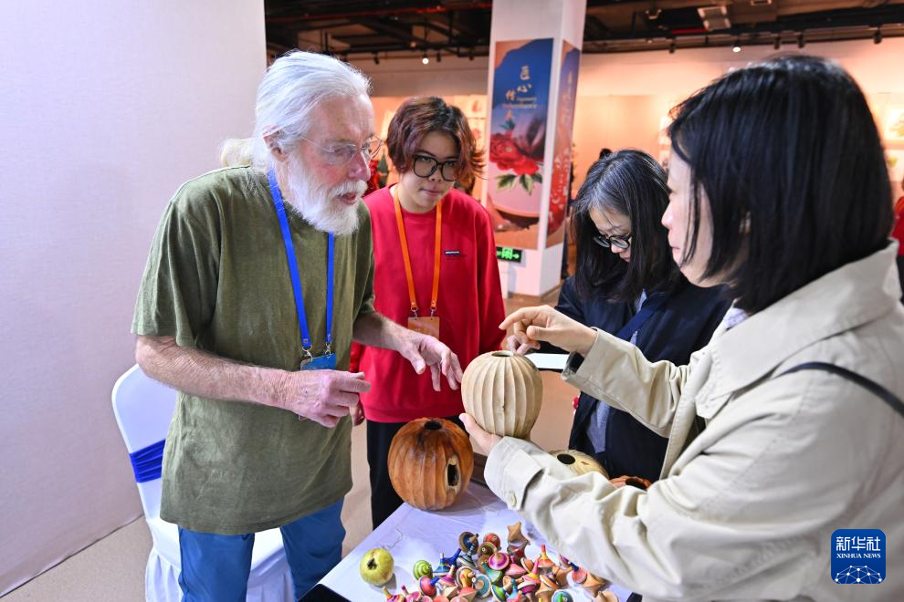 12月12日,国外参展代表在海上丝绸之路非物质文化遗产展演活动上交流互动。