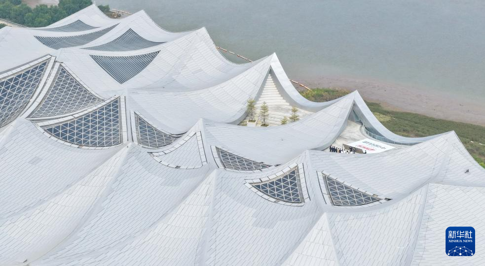 这是12月11日拍摄的大湾区科学会堂屋面“金属海浪”(无人机照片)。