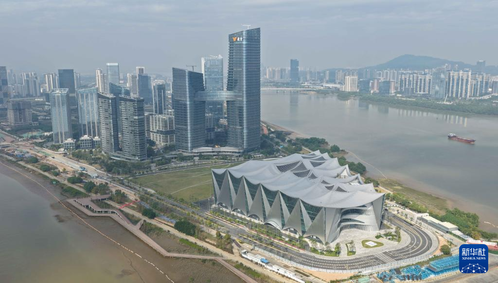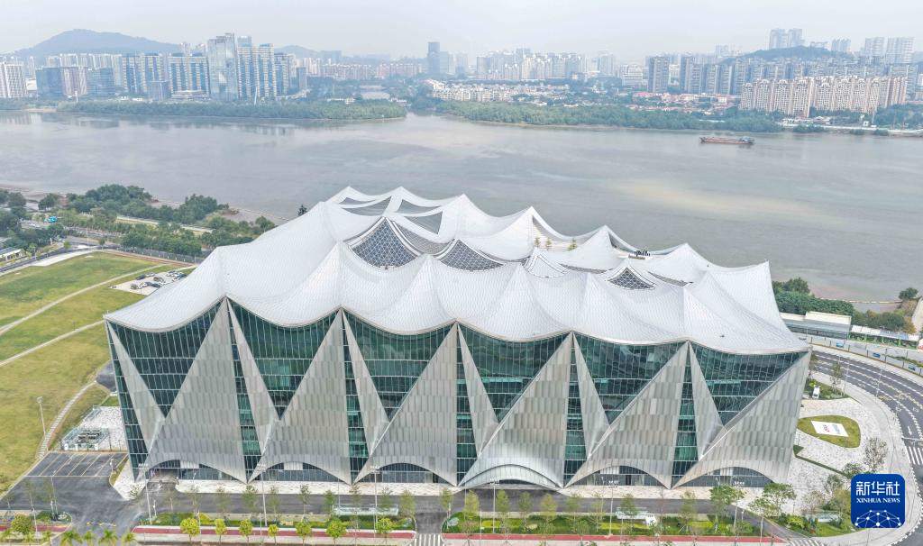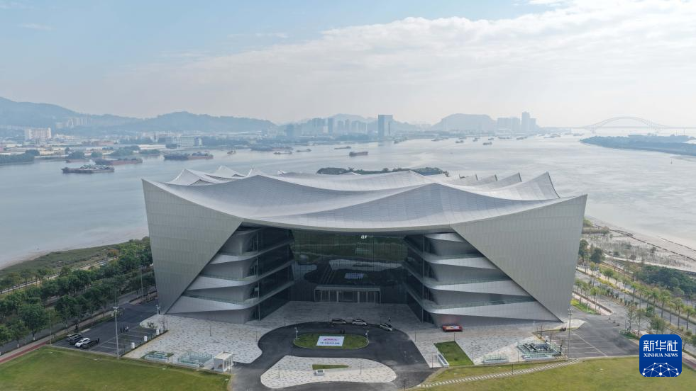 这是12月11日拍摄的大湾区科学会堂,立面形似船帆(无人机照片)。