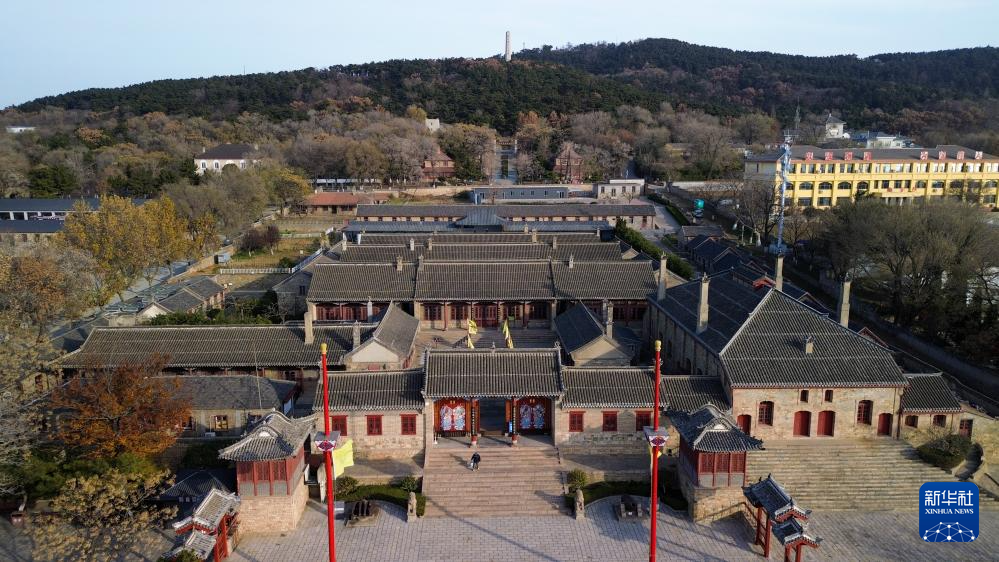 这是12月10日拍摄的威海刘公岛上的海军公所历史遗存(无人机照片)。
