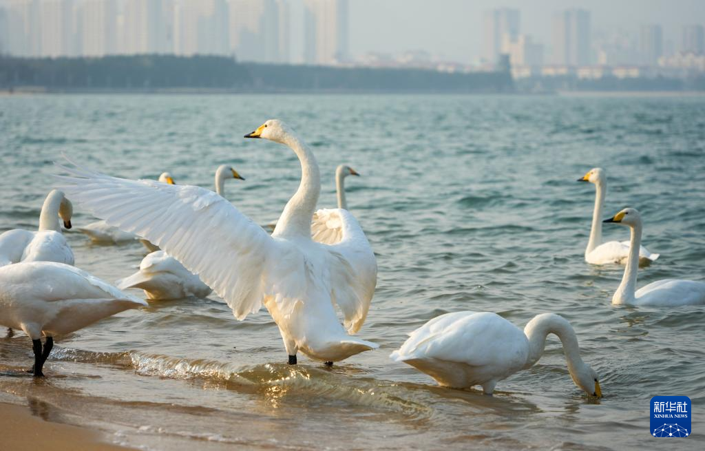 这是12月9日在威海九龙湾拍摄的野生天鹅。