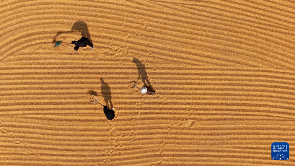 这是11月12日拍摄的黑龙江汤原鹤立国家粮食储备库有限责任公司内粮食收储的场景(无人机照片)。