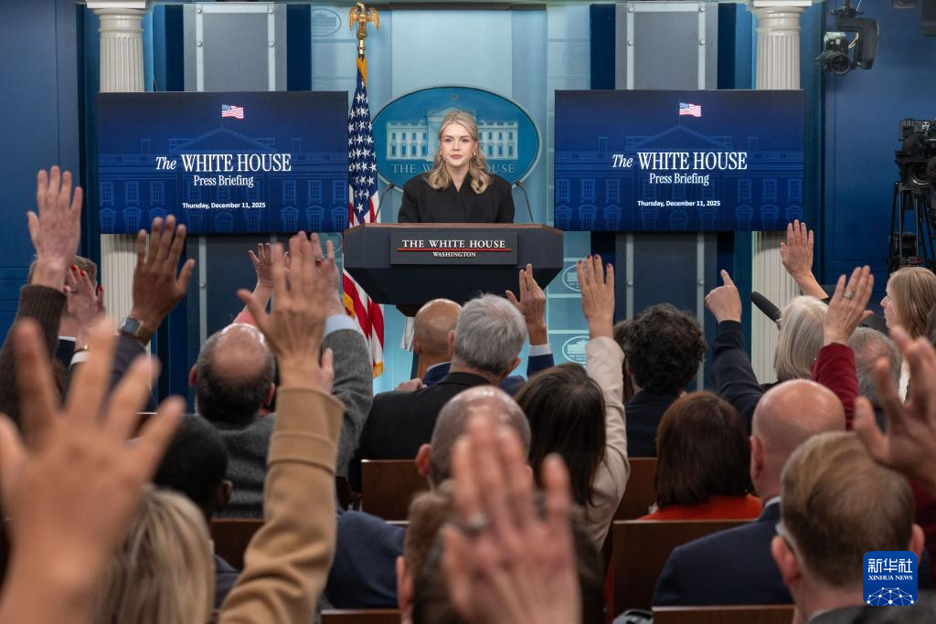 12月11日,在美国首都华盛顿白宫,白宫新闻秘书卡罗琳·莱维特出席记者会。